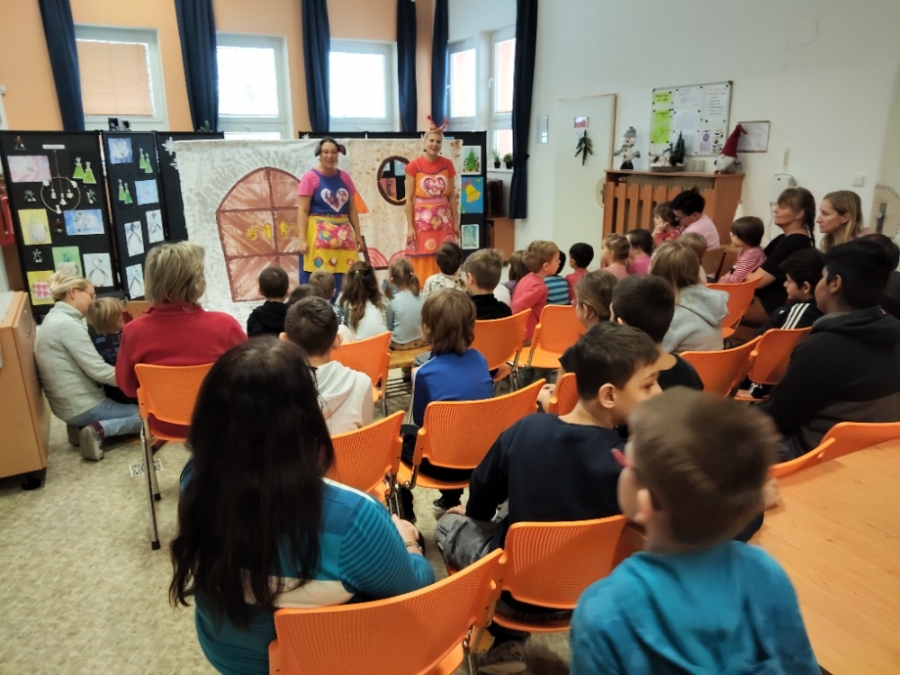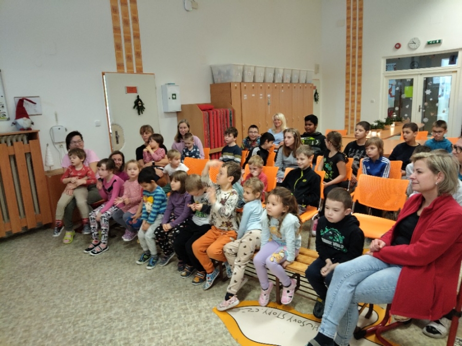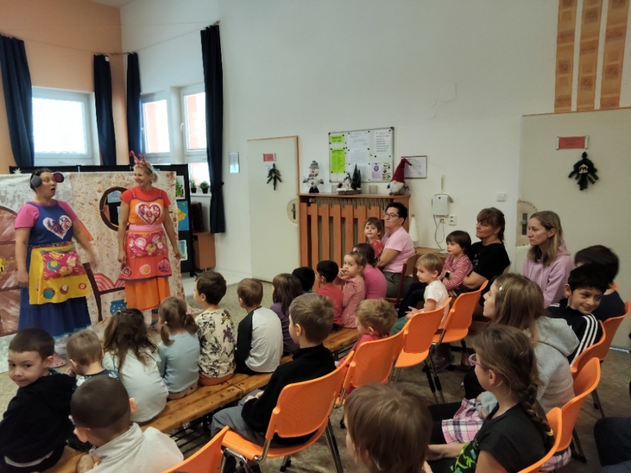 Dne 27. 11. k nám zavítalo divadélko s pohádkou Myška Klárka a veverka Terka, která děti vtáhla do kouzelné atmosféry začínajícího adventu, dobrodružství a laskavého humoru. Děti si užily spoustu smíchu, písniček, a aktivního zapojení do děje. Divadelního představení se zúčastnily nejen děti ze školky, ale také žáci z 1. stupně naší ZŠ.
