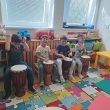 I letos se můžeme každý měsíc těšit na aktivity v rámci muzikoterapie. A 1. lekce začala už nyní v září – byli jsme rozdělení na 2 skupiny. Jedna skupina měla setkání 13. září a druhá o dva dny později. Seznamovali jsme se s muzikoterapeutickými nástroji, s dechovým cvičením, s relaxací, i s bubnováním, zkrátka se vším, co nás v muzikoterapii čeká a co k muzikoterapii patří.