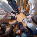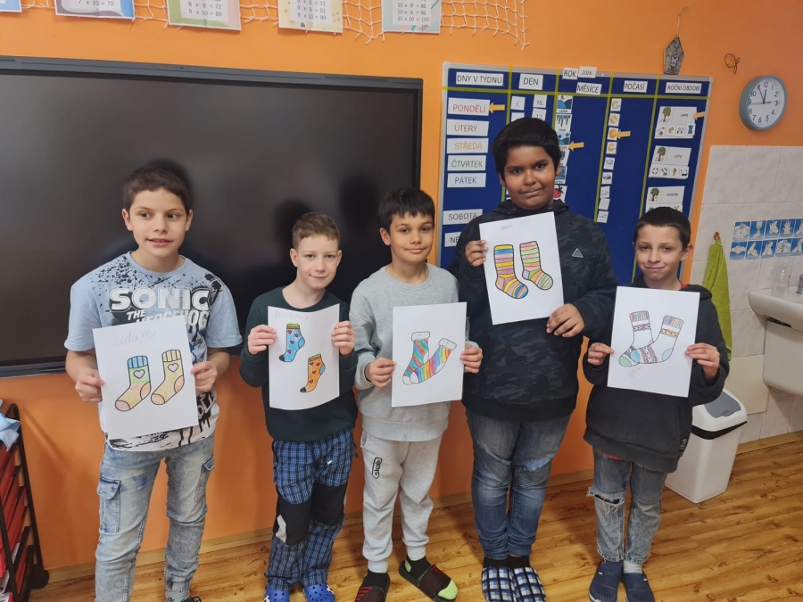 Jako každý rok, i letos jsme na naší škole oslavili světový den Downova syndromu akcí s názvem Ponožková výzva. Datum 21. 3. není vybráno náhodně. Symbolizuje tři kopie 21. chromozomu, které jsou pro Downův syndrom typické. Rozdílné ponožky se staly symbolem, neboť chromozom X připomíná tvar dvou ponožek přiložených patami k sobě. Nejde však jen o vysvětlení genetické odlišnosti, ale o něco mnohem širšího a hlubšího – o přijetí, respekt a oslavu lidské rozmanitosti a jedinečnosti. Ponožková výzva, do které jsme se zapojili, má jednoduchý, ale silný symbol. Když si vezmeme každou ponožku jinou, dáváme tím najevo, že odlišnost je v pořádku. Že není nutné být stejný jako ostatní, abychom byli přijímáni. Naopak – právě naše rozdíly nás dělají zajímavými, jedinečnými a nenahraditelnými. Důležité je, jak se díváme na druhé lidi. Jestli v nich vidíme jen to, co je jiné – nebo i to, co nás může spojovat. S žáky jsme si pustili video o odlišnosti mezi lidmi v Království etikety (ČT Edu), povídali si na téma jedinečnosti a rozmanitosti lidí, a nakonec si vymalovali „ponožkové omalovánky“ těmi nejveselejšími barvami. Celá akce je především o zvýšení povědomí o lidech s Downovým syndromem, o tom, že ve společnosti mají své místo a že mohou být jejími platnými členy. Tito lidé nemusí být jen přítěží společnosti, ale mohou být i pomocí. V Česku se s touto poruchou podle společnosti Down Syndrom CZ narodí v průměru padesát dětí ročně, celosvětově se takových dětí narodí okolo 100 tisíc. Z dnešního dne jsme si odnesli více než jen barevnou vzpomínku. Odnesli jsme si i vědomí, že každý z nás má své místo, svou hodnotu a svou jedinečnost.