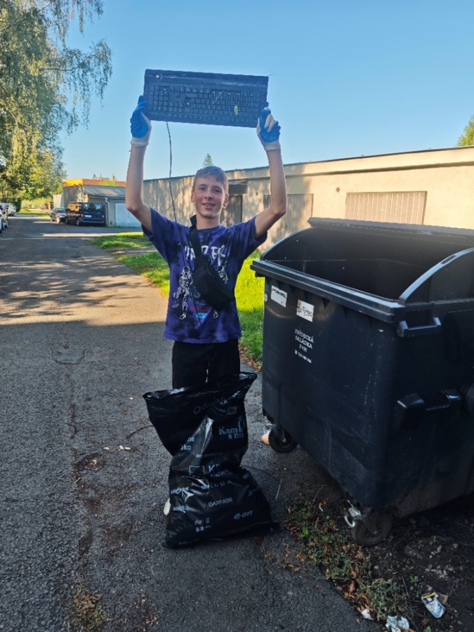 V pátek 19.září 2025 se naše třídy zapojily do podzimního úklidu. Dopoledne jsme se věnovali ekologickým pracovním listům a využívali webové stránky Tonda Obal a Wordwall. Poté jsme vyrazili k řece Ostravici, kde žáci s nadšením sbírali odpadky. Společně se nám podařilo naplnit 14 pytlů a nejzajímavějším nálezem byla počítačová klávesnice.