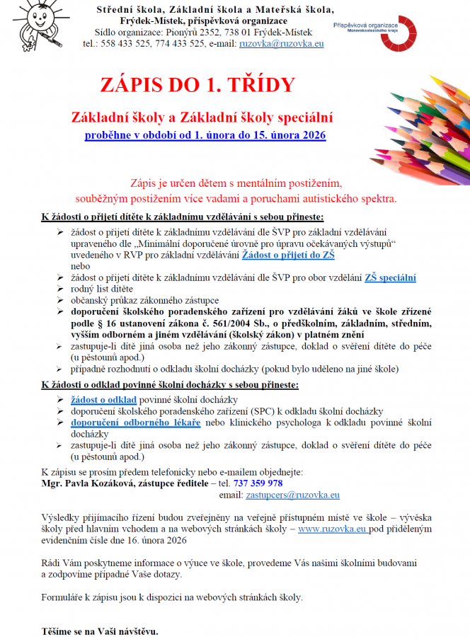 ZÁPIS DO 1. TŘÍDY Základní školy a Základní školy speciální