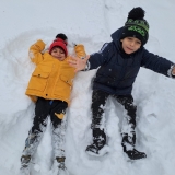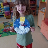 Hurá! Letos nám počasí přálo. Všude je bílo, všude plno sněhu, a tak jsme se tomuto sněhovému tématu věnovali nejen jeden den – ale každý den, a to po celý týden! Na zahradě jsme měli sněhové radovánky. Koulování, stavění sněhuláka, andílky ve sněhu, snažili jsme se o jízdu na lopatkách – zkrátka pravé zimní hrátky. A jaký je sníh? Studený, mokrý, bílý…zkrátka fajn! Nakonec jsme si i v teploučku našich tříd vytvářeli veselé sněhuláky z papíru. A že se povedli!