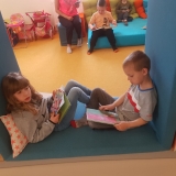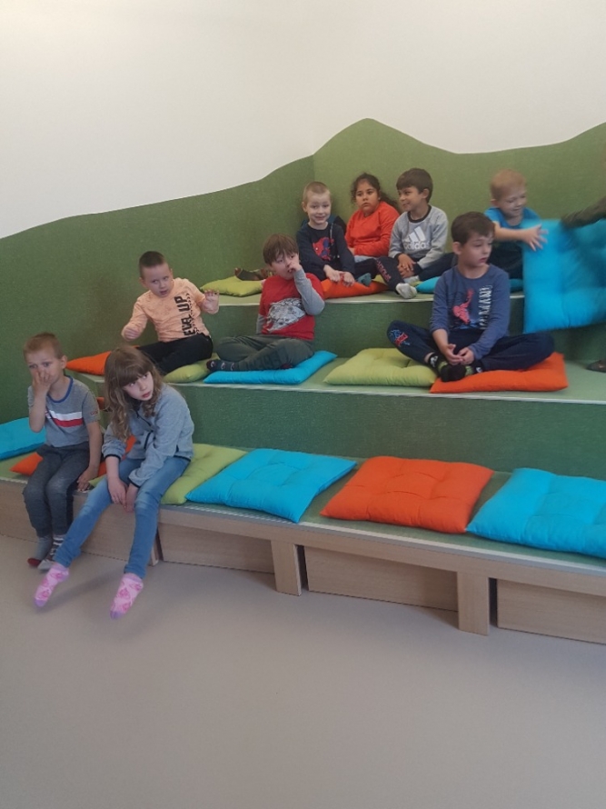 Dnes jsme navštívili knihovnu ve Frýdku-Místku. Čekala na nás paní knihovnice, povídala si s námi o knížkách, přečetla nám pěknou pohádku, doprovázenou obrázky. Taky jsme se dozvěděli, jak se musíme ke knížkám chovat, aby byly stále pěkné a mohli si je zájemci přečíst. Také nám nabídla, že se můžeme stát čtenáři této knihovny a poradila, jak na to. Mohli jsme se si prohlédnout knížky, které nás zaujaly a k tomu si udělat i pohodlíčko v připravených polštářích a čtenářských koutcích.