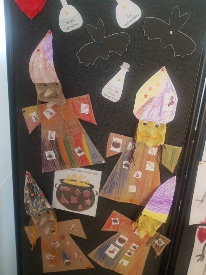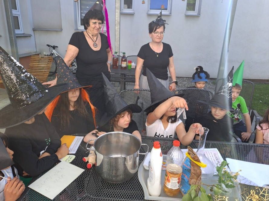 Dnešní den se v naší MŠ nesl ve znamení čarodějnic. Celé dopoledne se všechny malé čarodějnice a čarodějové snažily plnit úkoly na školní zahradě, aby nasbíraly ingredience na uvaření kouzelného lektvaru, který omladí starou čarodějnici. Když byly úkoly splněny, už nic nebránilo uvařit kouzelný lektvar! A protože se vše povedlo, dostaly všichni malí čarodějové i sladkou odměnu – zmrzlinku. Den před touto akcí jsme si ve třídě také povídali o kouzlech, čárech a vytvořili si malé čarodějnice, které zdobí naší nástěnku před třídou.