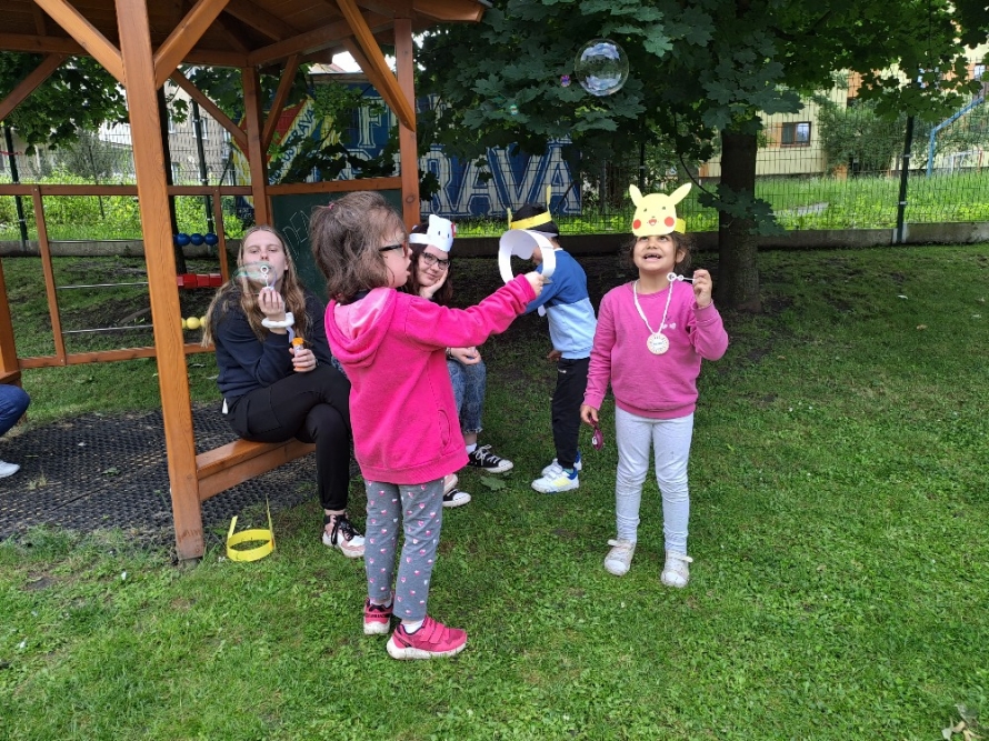 A je tady červen! A ten začíná tím, že všechny děti mají svátek. To jsme si nemohli nechat ujít, a tak hned v pondělí 3.6. nás ve školce čekaly oslavy – soutěžili jsme, mlsali jsme, hráli jsme si na zahradě. Soutěže pro nás, s paní učitelkami, připravily žákyně střední školy, které jsou u nás na praxi. Byly to Kačka, Terezka a Anička. A měly pro nás také krásné papírové medaile… Cílem tohoto dne bylo udělat dětem radost, a věříme, že to se povedlo!