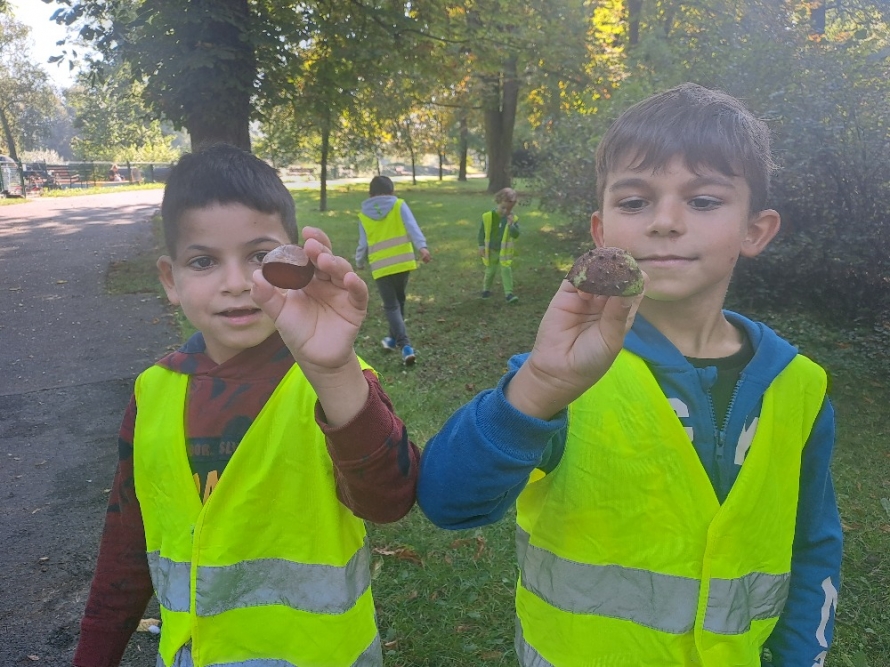Na vycházce do sadů Bedřicha Smetany jsme si zábavnou formou všímali rozmanitosti přírody kolem nás. S nadšením jsme se všichni pustili do plnění různých úkolů jako např. „najdi hezký kaštan a dej si ho do kapsy, udělej si z listí kytku, najdi kytku, sáhni na vysoký strom a obejmi ho, napodob zvuk v okolí, ukaž na něco žlutého, hnědého, bílého, zeleného“…. Děti aktivně plnily úkoly, byly zvídavé a měly spoustu zajímavých otázek a vlastních postřehů. Velkým zážitkem bylo, že se před námi na trávníku objevila veverka – nastalo několika minutové sledování, než opět zmizela v korunách stromů!