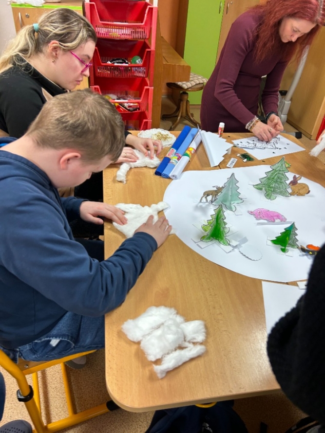 Projektový den proběhl úspěšně. Všechny třídy speciální školy se aktivně zapojily do činností zaměřených na poznávání zimní krajiny, zimních jevů a života zvířat v zimě. Program byl vhodně diferencován tak, aby odpovídal různým vzdělávacím potřebám žáků, a umožnil smyslové, pohybové i tvořivé aktivity. Atmosféra během celého dne byla klidná, spolupracující a motivující. Žáci byli do aktivit zapojeni s velkým zájmem a většině z nich se podařilo splnit zadané úkoly dle svých možností.Děti tvořily zimní krajinky kombinací různých materiálů (vata, fólie, bublinková fólie, větvičky). Výstupy byly esteticky hodnotné a vhodné k vystavení. Mnozí žáci překvapili svou kreativitou a zvládli i samostatnější práci. Na závěr vznikla společná zimní výstava z výtvarných prací – zimní krajinky, vločky, stromy v zimě a zvířata. Výstava působila jednotně a reprezentativně. Žáci si mohli prohlédnout tvorbu ostatních tříd, což podpořilo jejich motivaci i sebehodnocení. Projektový den splnil své cíle – umožnil žákům prožít zimu všemi smysly, rozvinout tvořivost, pohyb i poznání přírody. Byl dobře organizovaný, přístupný všem žákům a přinesl velmi pozitivní zpětnou vazbu.