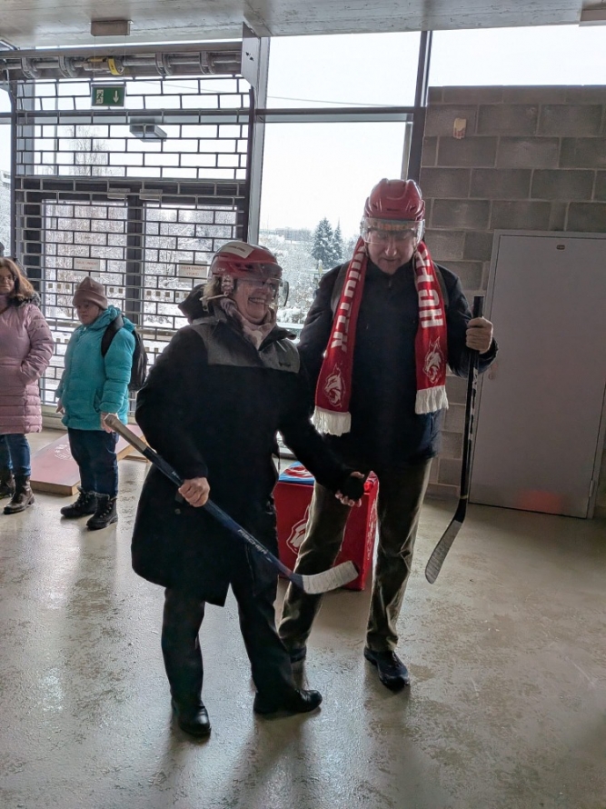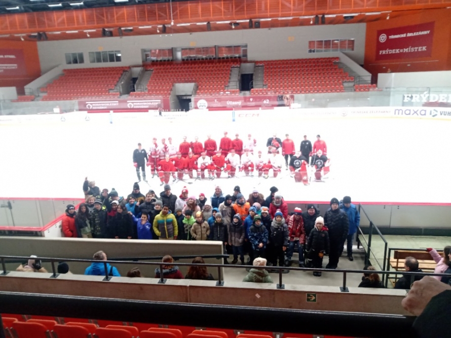 Dne 16. února 2026 jsme si po dvou letech zopakovali návštěvu haly Polárka, abychom se podívali na naše hokejisty při tréninku. Akce začala prohlídkou prostor, kde hokejisté trénují i relaxují, děti si vyzkoušely správnou trefu a střely na branku a taky si vyzkoušely, jak jim sluší helmy. Pak nám příjemný pán popovídal o tom, jak funguje rolba, co všechno řidiči rolby ukazuje displej a jakou může jet maximální rychlostí – a ne, není to 150, jak děti tipovaly, ale jen 20 km/hod. Pak už následoval pořádný trénink, během kterého se s námi hokejisté i vyfotili. I když byla v hale pěkná zima, stále tam bylo tepleji než venku (-11 stupňů C) a akci jsme si všichni užili jak se sluší a patří!