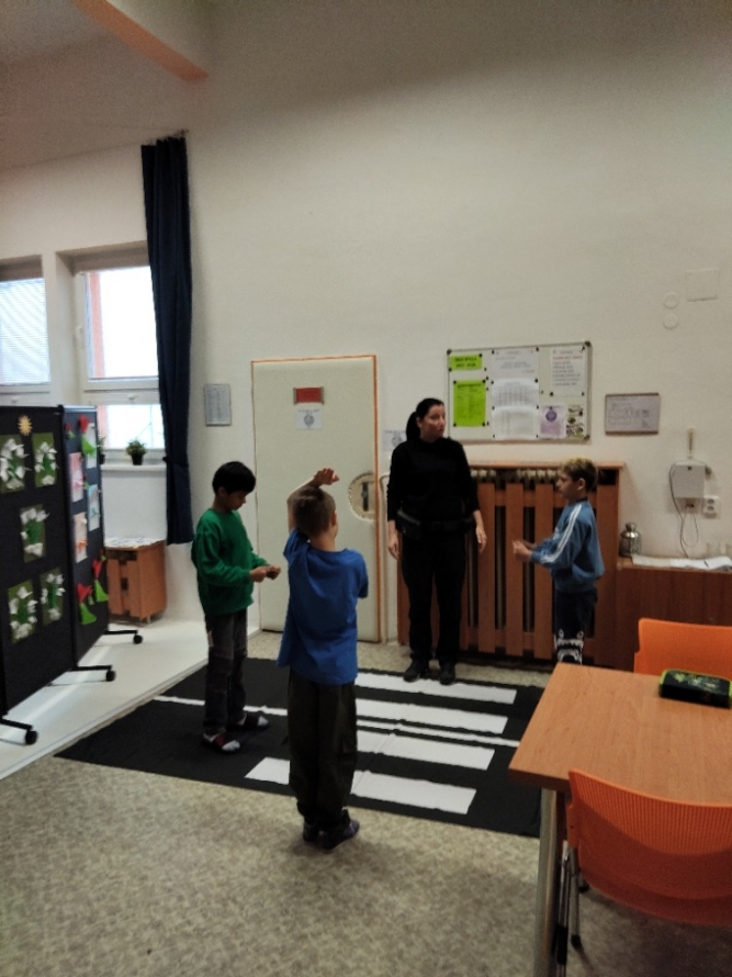 Dne 17.4. 2026 byla uskutečněna beseda s Městkou policií pro první stupeň. Žáci si procvičili telefonní čísla integrovaného záchranného systému, přecházení přes přechod pro chodce a byly pro ně připraveny i další aktivity.
