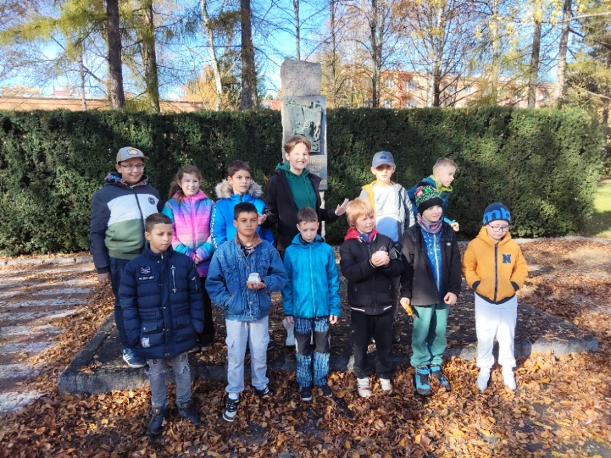 V pátek 31. 10. 2025 se uskutečnil projektový den na téma „Dušičky“ pro třídy 1.,2.,3.,4. a ZŠS V. Cílem projektu bylo uvědomit si význam a hodnotu tohoto svátku, naučit se s úctou vzpomínat na své blízké a pochopit, že vzpomínání může být i radostné a plné vděčnosti. V průběhu dopoledne nás čekalo vyprávění, čtený příběh s danou tématikou, shlédnutí krátkého dokumentu, zapalování svíček u kostela a nedalekého památníku.